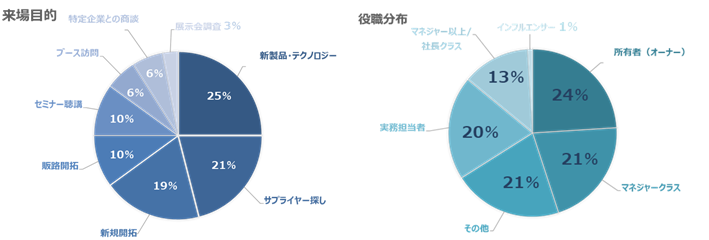 また、来場者の役職では、オーナーやマネージャークラス以上のいわゆる「決定権のある層」が全体の半分以上を占めており、商談を進める上でも、適した環境が整っているといえます。