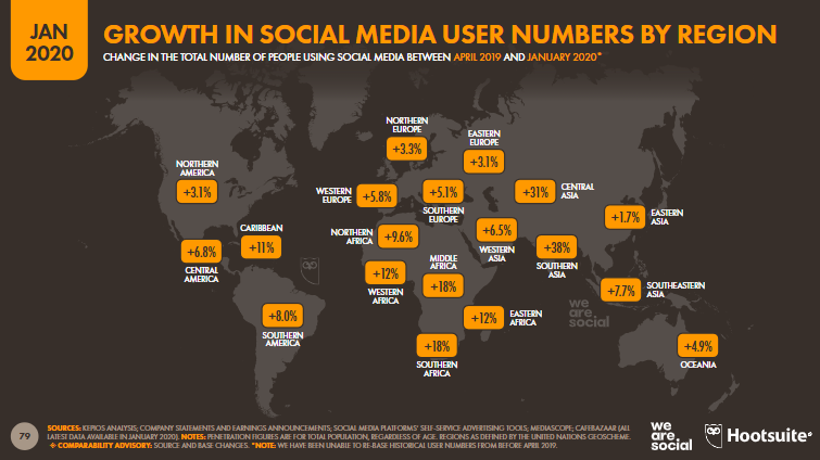 東南アジアでのソーシャルメディア成長率は、プラスです。