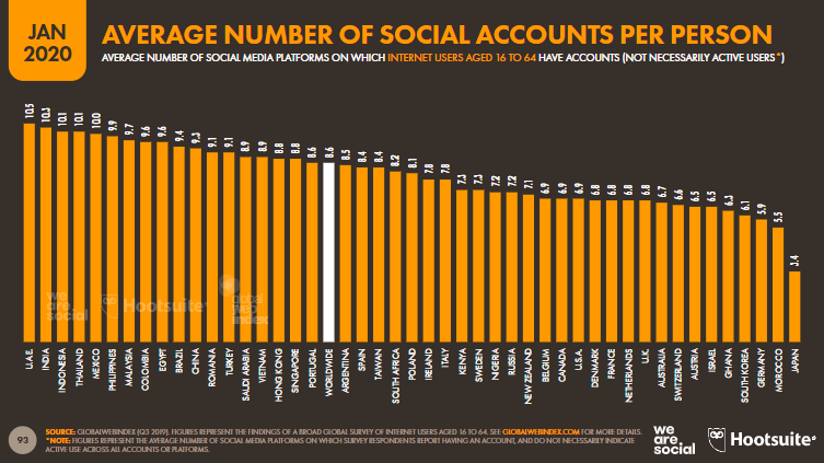 日本と比べると、2倍以上のアカウントを持っているようです。
