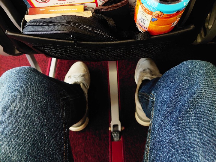 難点は、手元に読書灯のスイッチがないので、機内消灯時は狭いシートでいちいち立ち上がらないといけないのが煩わしいことくらいですね。