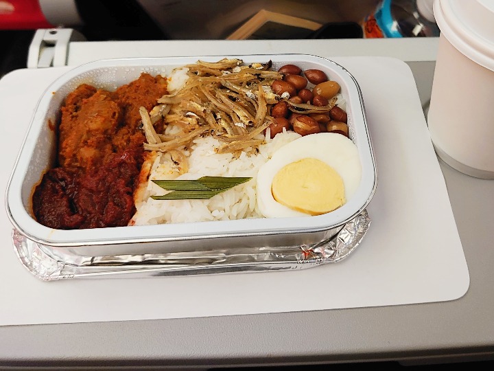 ちなみに、今回、往路便で注文したのはこちらのナシレマ(なぜかマレーシア料理)。