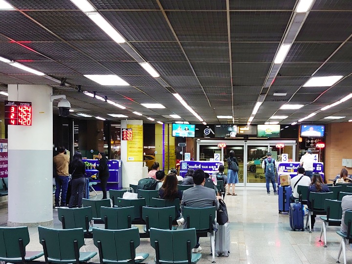 ドンムアン空港のタクシー乗り場は、国際線到着ロビーに出て左手。