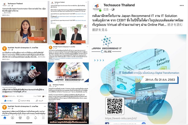 タイは、世界最大のFacebook大国であり、B2Bマーケティングでもその例外ではありません。そのためJapan Recommend IT Onlineを支える役割としてJapan Recommend ITのFacebookページを開設しています。こちらは、Japan Recommend IT Online終了後も、タイの企業経営者、IT技術者、ITユーザーに対して、Japan Recommend IT Onlineの情報はもとより、今後、新たな日本のITソリューションを伝えるコミュニティの場として活用をしていく予定です。