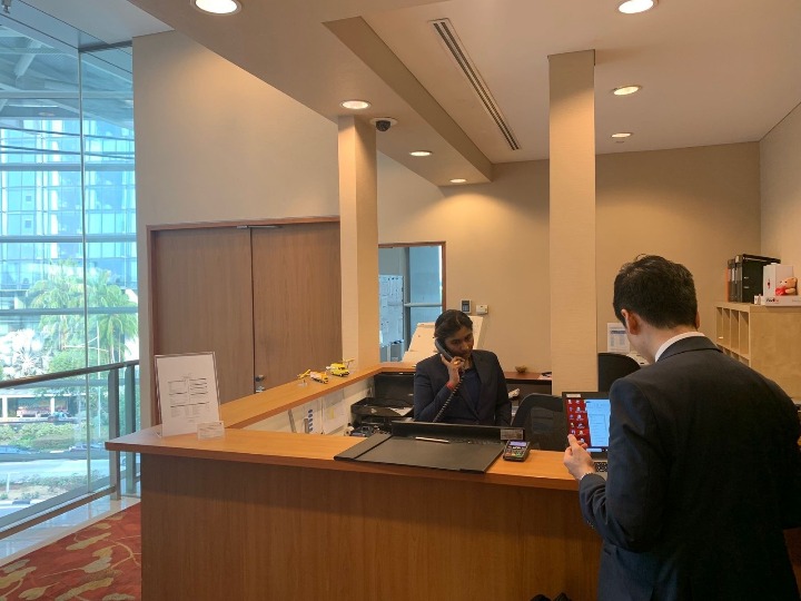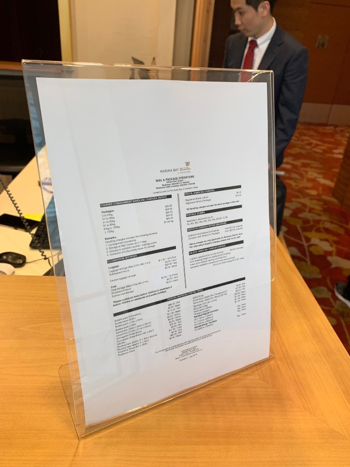 1F会場の近くにマリーナベイ・サンズの施設の総合受付があるので、ここで施設案内のパンフレットを入手できます。