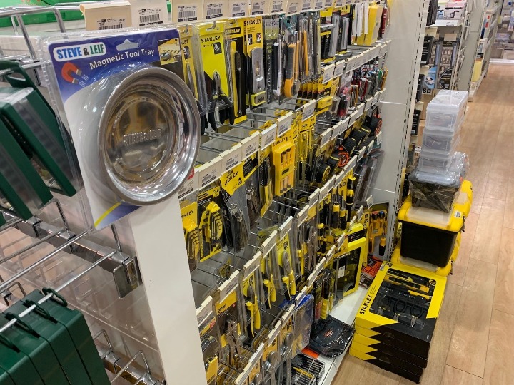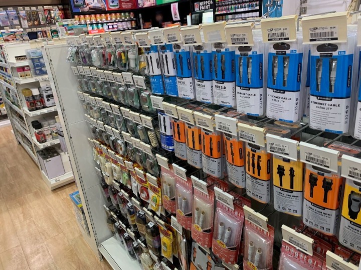 工具類やコード類、変換器、テーブルタップ、ガムテープなど、一通りのものは入手できます。