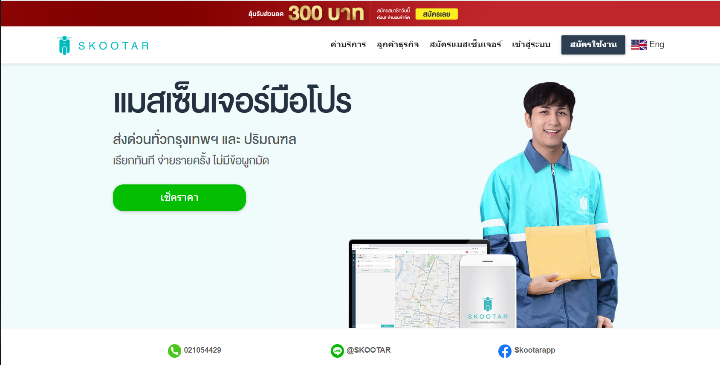 SKOOTAR Applicationは、ウェブサイトからバンコク都内での様々な荷物を届けてくれるB2Cサービスです。